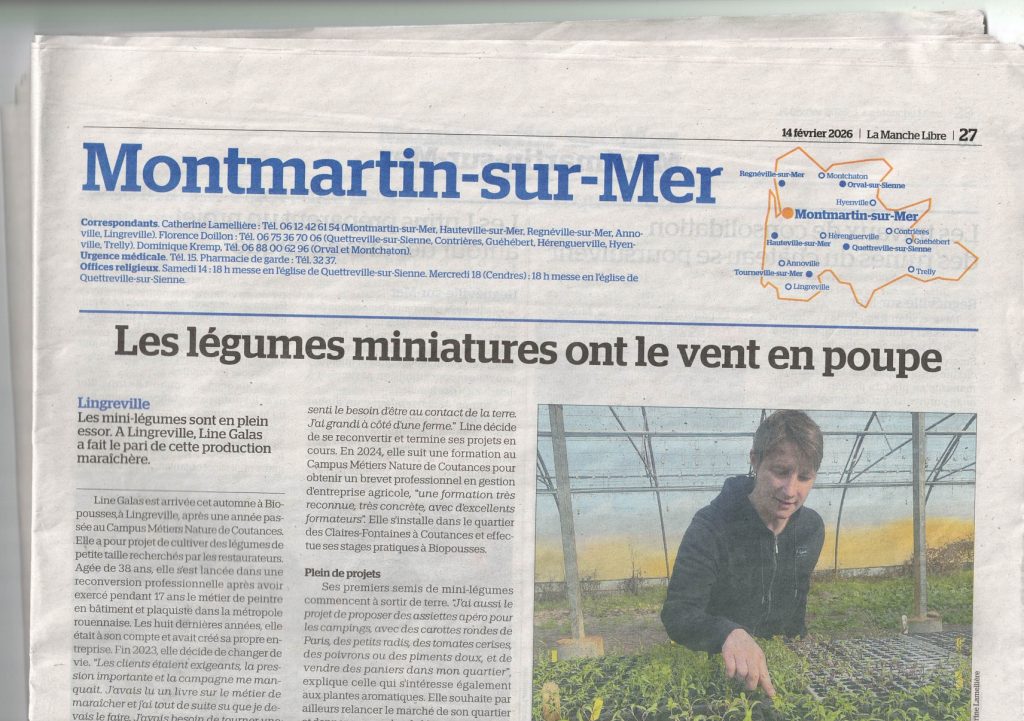 Démarrage du test d’activité agricole de Line Galas en novembre 2025 en maraîchage bio (mini-légumes) :