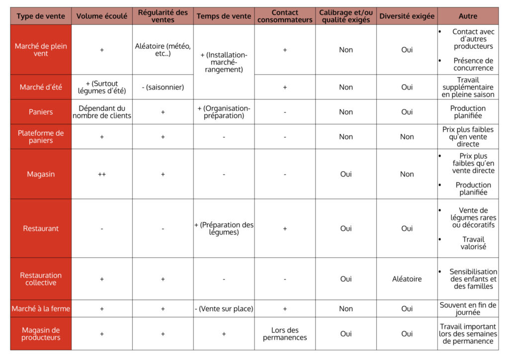 Attention : plusieurs facteurs sont à prendre en compte lors du choix d’un débouché. Même s’il est rentable, un débouché doit toujours être réfléchi vis-à-vis des ressources humaines disponibles, des opportunités en local et des préférences du maraîcher.